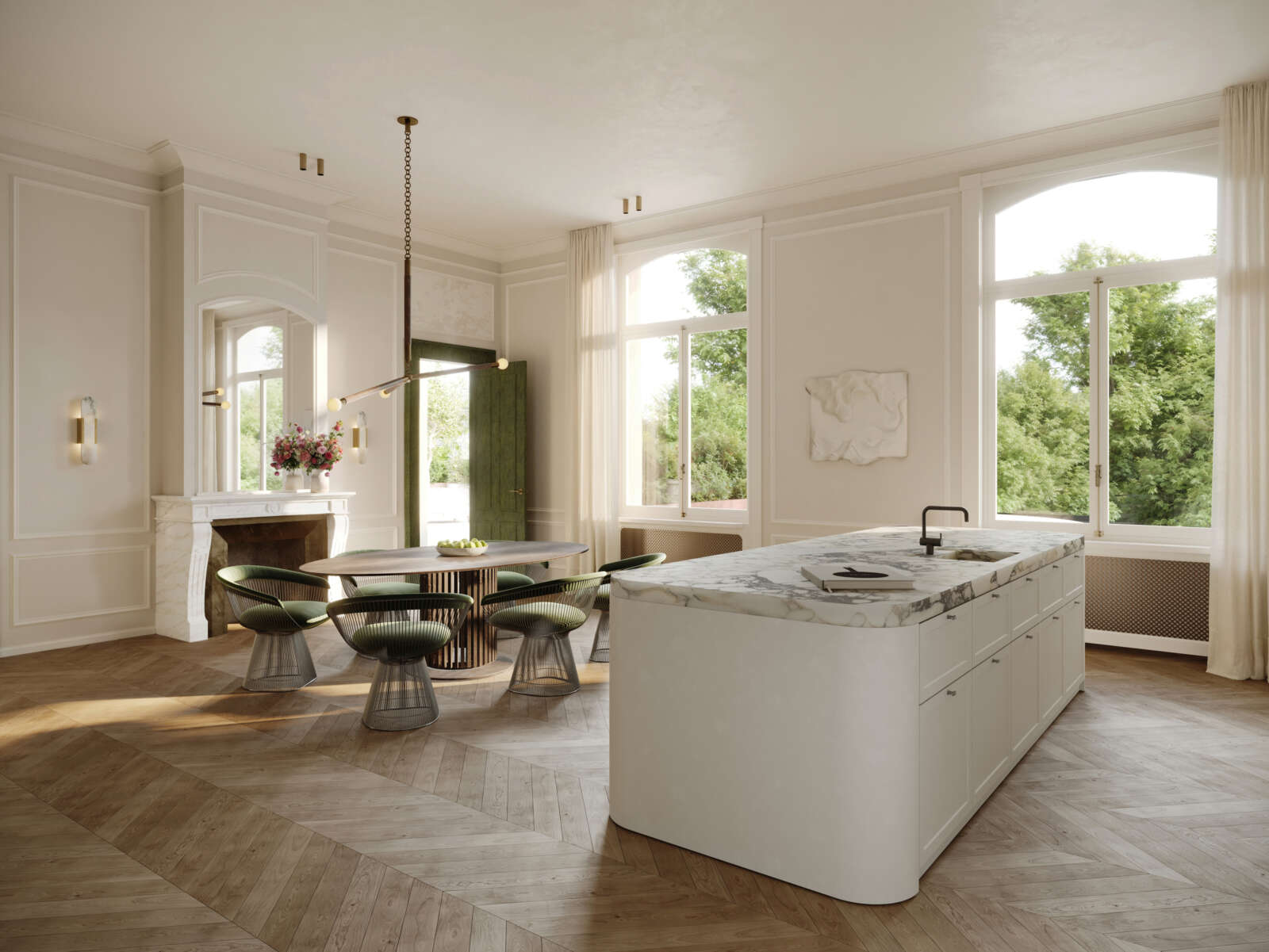 De gevarieerde, exclusieve collectie van residenties – met oppervlaktes tussen 60 m2 en 327 m2 en één tot vier slaapkamers - wordt met uiterste zorg vormgegeven door de gerenommeerde interieurarchitect Arjaan De Feyter. Door de imposante raampartijen en plafondhoogtes versmelten de binnenruimtes naadloos met het adembenemende uitzicht op de binnentuin of het Tenbosch Park. Elk appartement belichaamt het gevoel van grandeur en nobel wonen in een ingetogen, elegante en tijdloze sfeer.